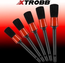 Sada Xtrobb obsahuje pět detailingových štětců s různými průměry, které vám umožní čistit i těžko přístupná místa ve voze. Jsou vyrobeny ze syntetických štětin a jejich ergonomická konstrukce zajišťuje pohodlné používání.