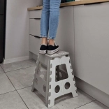 Lehká a pevná skládací stolička ve světle šedé barvě přidá potřebných 39 cm výšky, má nosnost až 150 kg a protiskluzový povrch pro bezpečný krok. Díky skládací konstrukci a rukojeti ji snadno přenesete i uložíte.