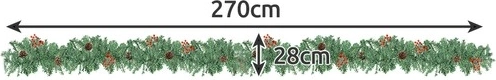 Elegantní vánoční girlanda o délce 270 cm s hustou jehličnatou zelení, přírodními šiškami a červenými bobulemi rozzáří váš domov díky teplému LED osvětlení. Je lehounká, tvarovatelná a odolná, snadno ji umístíte na zábradlí, krbovou římsu či dveře. 50 LED diod na baterie poskytne útulnou sváteční atmosféru bez nutnosti zásuvky.