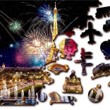 Puzzle je oboustranné (2v1): z jedné strany skládáte podle barevného motivu noční Paříže s ohňostrojem, z druhé podle opakujícího se vzoru jen podle tvarů dílků. Hladké hrany bez třísek zajišťuje precizní laserové zpracování a pevná HDF deska o síle 3–4 mm. V balení najdete také samostatnou předlohu pro pohodlnější skládání.