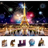 Skládejte barevný motiv noční Paříže nebo druhou stranu s opakujícím se vzorem jen podle tvarů dílků. Dvě výzvy v jednom balení.