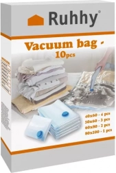 Ušetřete místo doma i na cestách se sadou vakuových sáčků v 10 kusech a 4 praktických velikostech. Po odsátí vzduchu běžným vysavačem se objem textilií zmenší až o 80 %. Obsah je spolehlivě chráněn před prachom, vlhkostí, vodou a moly, a oblečení zůstává čisté a voňavé. Ideální pro sezónní oblečení, peřiny a přehozy i pro organizaci kufru při cestování.