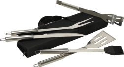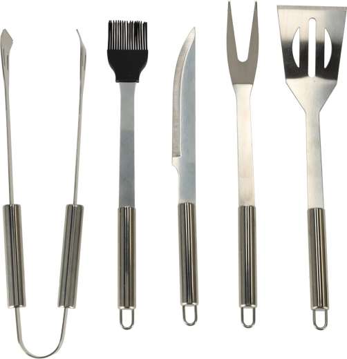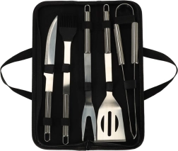 Praktická sada grilovacího náčiní pro každého milovníka BBQ. Obsahuje pět nezbytných nástrojů ze nerezové oceli a odolné zipové pouzdro pro snadné uložení a přenášení. Dlouhá držadla zajistí bezpečnou manipulaci u žáru, nástroje jsou trvanlivé a odolné proti korozi.