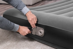 Díky vestavěné AC pumpě máte matraci připravenou během pár minut a po použití ji stejně rychle vyfouknete a uložíte do přepravní tašky. Odolný materiál PVC zajišťuje dlouhou životnost a spolehlivost při použití v interiéru i exteriéru.
