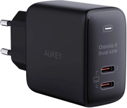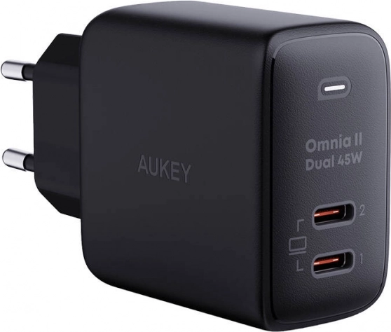 Kompaktní síťová nabíječka Aukey s technologií GaN nabídne až 45 W výkonu, 2× USB‑C pro současné nabíjení dvou zařízení a podporu rychlého nabíjení (PD 3.0, QC 4.0+, PPS). Samozřejmostí je pokročilá ochrana proti přehřátí, přepětí a nadproudu.