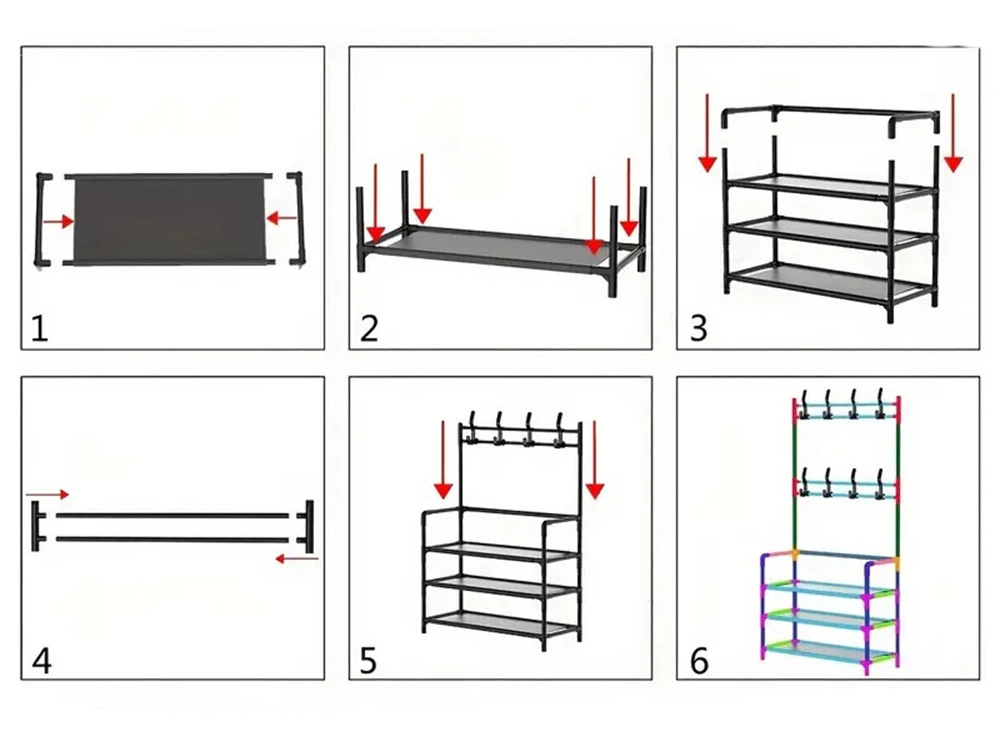 Díky otevřeným policím mají boty lepší ventilaci a snadný přístup. Robustní kovová konstrukce zajišťuje stabilitu, takže stojan spolehlivě obstojí v každodenním provozu předsíně, šatny i ložnice. Montáž je rychlá a intuitivní.