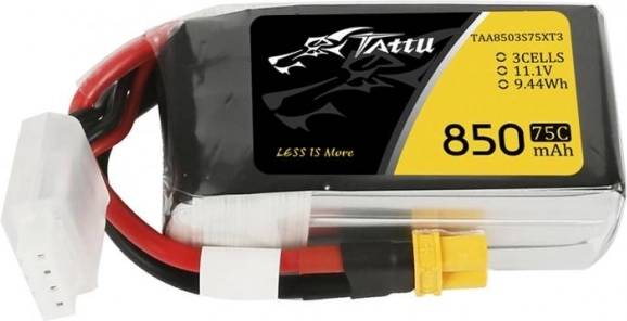 Baterie Tattu je navržena pro náročné piloty, kteří vyžadují spolehlivost a špičkový výkon. Díky kapacitě 850 mAh a napětí 11,1 V (3S) s trvalým vybíjecím proudem 75C poskytuje rychlou odezvu, stabilní napětí a výborný poměr hmotnosti k výkonu.