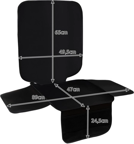 Tato odolná ochranná podložka z polyesteru s povrchem z eko kůže účinně chrání sedadla před skvrnami, drobky a vylitými nápoji. Hladký povrch se snadno čistí a nečistoty nepronikají do struktury materiálu. Univerzální rozměry zajišťují kompatibilitu s většinou aut i dětských autosedaček instalovaných po i proti směru jízdy.