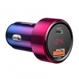 Stylová červenomodrá autonabíječka BASEUS Magic se inteligentně přizpůsobí potřebám vašeho zařízení a zajistí rychlé i šetrné nabíjení během jízdy. Díky kombinaci USB‑C a USB‑A portu bez problémů nabijete dvě zařízení naráz – od smartphonů přes tablety až po příslušenství.