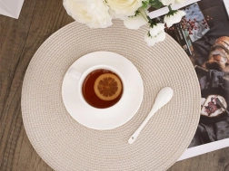 Béžové provedení a průměr 38 cm se dokonale hodí k moderním i klasickým stolům a snadno ladí s nádobím i textiliemi.