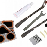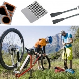 Obsahuje tlapky pro demontáž pneumatik, klíč na kola a další důležité nástroje, které usnadní opravy na cestách.