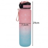 Motivační láhev na vodu 1 l s brčkem a časovačem pití, růžovo‑modrá