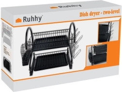 Zažijte revoluci v sušení nádobí s dvouvrstvým odkapávačem Ruhhy, který nabízí pevnou konstrukci z kovu s moderním černým vzhledem. Díky dvouvrstvé konstrukci využijte prostor kuchyně naplno, přičemž horní úroveň je ideální pro 16 talířů, zatímco spodní úroveň je perfektní pro mísy, hrnky a sklenice. Každá vrstva je vybavena vlastním tácem pro zachycení vody.