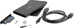 V balení je vše potřebné pro rychlé zprovoznění – připojovací kabel a příslušenství k montáži, stačí vložit 3,5" SATA disk.