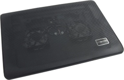 Chladící podložka pod notebook je vybavena dvěma extrémně tichými ventilátory, které odvádějí teplo a zajišťují efektivní chlazení. Její konstrukce je solidně zpracovaná a vydrží značné zatížení. Podložka se snadno připojí k portu USB notebooku a nevyžaduje žádná externí napájecí zařízení.