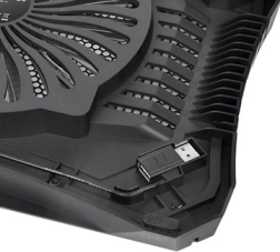 Jediný velký ventilátor pokryje celou plochu notebooku a účinně snižuje teploty i při zátěži.