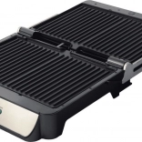 Gril GRS701 nabízí pohodlí při používání díky nastavitelné teplotě, kontrolním lampičkám a vyjímatelným plotnám pro snadné čištění. Nehřející se rukojeť zajišťuje bezpečné používání. Elegantní nerezový design doplní každou kuchyni a kompaktní rozměry usnadňují skladování i převoz na cesty.