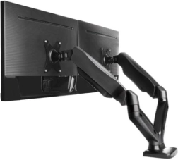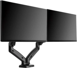 Elegantní dvojitý držák monitorů pro úhlopříčky až 32" uvolní místo na stole a zlepší ergonomii práce. Díky plynovým ramenům nabízí plynulé nastavení výšky, otočení a náklonu, má integrovanou správu kabelů a rychlou montáž díky VESA ve tvaru hrušky.