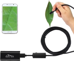 Flexibilní 5metrový kabel se snadno navádí i v úzkých ohybech a odolná kamerová hlava o průměru 8 mm se vejde do malých otvorů. Šest jasných LED diod s plynulou regulací jasu zajistí ostrý obraz i v úplné tmě. Pro zvýšení účinnosti inspekce lze na sondu nasadit zrcátko, háček nebo magnet – ideální pro dohledání a vytažení drobných předmětů.