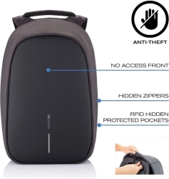 Bezpečně cestujte i dojíždějte s batohjem XD DESIGN Bobby Hero XL v elegantní černé. Nabízí antikradenou konstrukci otevíranou od zad, skryté zipy a RFID kapsy, materiál odolný proti proříznutí a vodě, ergonomické popruhy a bohatou vnitřní organizaci s místem pro notebook 17″ i tablet 12,9″. Integrovaný USB port, reflexní prvky a materiál z recyklovaného RPET z něj dělají ideální volbu pro město i cestování.