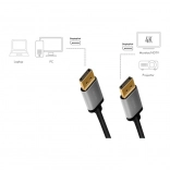 Spolehlivý kabel DisplayPort pro přenos obrazu v rozlišení až 4K při 60 Hz. Ideální pro monitory, grafické karty a dokovací stanice s konektory DP male – DP male. Kvalitní provedení s hliníkovými konektory a odolným kabelem zajistí stabilní signál a plynulé zobrazení.
