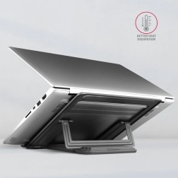 Odvod tepla je zajištěn otvorem v základně stojanu, čímž se minimalizuje riziko přehřívání notebooku. Díky chytré konstrukci lze úhel sklopení měnit i v průběhu používání.