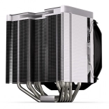 Šest masivních heatpipe a precizně opracovaná základna efektivně odvádějí teplo přímo z procesoru. Ventilátor s vlnitými hranami lopatek snižuje psychoakustický šum a nabízí volitelný semi‑passive chod pro absolutní ticho v nízké zátěži.