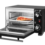 Elektrická trouba 10L černá je perfektní volbou pro menší domácnosti nebo kuchyně, díky svému kompaktnímu designu. Trouba nabízí nastavitelný termostat s rozsahem od 90 °C do 230 °C, což zaručuje všestranné použití od pečení až po grilování. Časovač je nastavitelný v rozmezí 0-30 minut, což poskytuje pohodlí a přesnost při přípravě pokrmů.