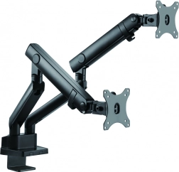 Praktický dvojitý držák na monitory do 32" s pružinovým mechanismem umožňuje snadnou montáž dvou monitorů. Vyjímatelné VESA adaptéry a důmyslné vedení kabelů zajišťují snadné použití a organizaci prostoru.