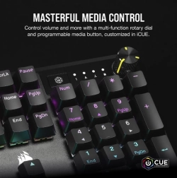 Praktické multimediální ovládání umožňuje rychle upravit hlasitost nebo přeskakovat skladby, aniž byste museli opouštět hru. Díky standardnímu rozložení s numerickým blokem, odolné konstrukci z plastu a kovu a stabilním klávesám získáte jistotu a komfort při každodenním používání.