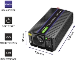 Robustní, přitom lehké hliníkové šasi odolá otřesům a mechanickému namáhání. Integrovaná EU zásuvka, USB port a automatický ventilátor zvyšují komfort používání. Měnič je ideální pro karavany, přívěsy, lodě a jachty, ale poslouží i jako nouzový zdroj (UPS) pro dočasné udržení chodu RTV a kancelářské techniky během výpadků proudu.
