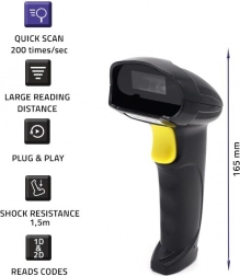 Univerzální čtečka čárových kódů Qoltec zvládá rychlé a přesné snímání 1D i 2D kódů v obchodech, skladech, lékárnách, knihovnách či kancelářích. Stačí namířit na kód a stisknout spoušť – okamžité potvrzení zvukem zajistí jistotu správného načtení. Ergonomická rukojeť a nízká hmotnost přinášejí pohodlí i při celodenním provozu.