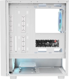 Vnitřní prostor pojme chladiče CPU do 175 mm a grafické karty do 330 mm (až 360 mm po demontáži předních ventilátorů). Součástí výbavy je také ARGB/fan kontroler pro snadné řízení podsvícení a otáček. Skříň tak nabízí vyváženou kombinaci estetiky, ticha a výkonu, ideální pro moderní herní sestavy.