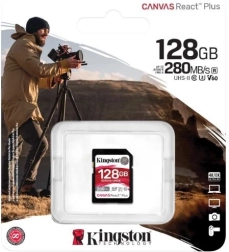Paměťová karta Kingston Canvas React Plus 128GB SD je ideální pro profesionální fotografe a kameramany. Nabízí vysokou rychlost čtení až 280 MB/s, což je vhodné pro záznam v rozlišení 4K.