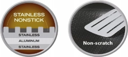 Magnetická nerez 430 na vnější vrstvě umožňuje použití na plynu, elektřině, sklokeramice i indukci. Pánev je vhodná i do myčky.