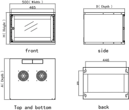 Skříň je navržena s důrazem na chlazení a kabeláž. Perforace v podlaze i stropu umožňují instalaci až dvou ventilátorů 120×120 mm na každé straně, zatímco kabelové průchodky 225×45 mm (nahoře i dole) zjednodušují vedení kabelů. Dveře lze přehodit na levé či pravé otevírání a zadní část je otevřená pro snadný přístup a odvětrání.