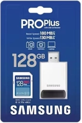 Profesionální paměťová karta SAMSUNG PRO Plus s kapacitou 128 GB a přiloženou čtečkou nabízí rychlost čtení až 180 MB/s a zápisu až 130 MB/s pro plynulé 4K video a rychlé sériové snímání. Odolná konstrukce se 7násobnou ochranou a 10letou zárukou je ideální pro fotografy, tvůrce obsahu i profesionály.