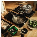 Třívrstvé dno pánve zajišťuje optimální a rovnoměrné rozložení tepla, což přispívá k efektivnímu vaření. Pánev je kompatibilní se všemi typy sporáků, včetně indukčních, a je odolná vůči vysokým teplotám až do 270 °C. Můžete ji použít i v troubě při teplotách do 150 °C a je vhodná pro mytí v myčce nádobí.