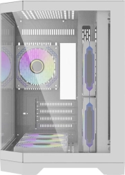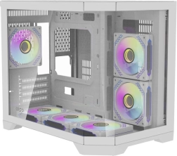 Prémiová počítačová skříň Darkflash v elegantní bílé barvě s trojitým sklem a šesti RGB ventilátory poskytuje jedinečný vzhled i efektivní chlazení pro váš high-performance počítač.