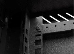 Díky čtyřem vertikálním lištám a zesílené konstrukci z ocelového plechu je uložení komponentů stabilní a bezpečné. Horní a spodní kabelové průchodky zrychlují vedení kabeláže, uzemňovací vodič zvyšuje bezpečnost. Skříň je dodávána ve výhodném balení typu flat pack, což šetří místo i náklady na dopravu a umožňuje snadnou a rychlou montáž.