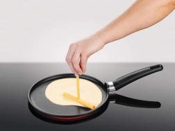 Tato lopatka na palačinky s válečkem je skvělým pomocníkem pro milovníky domácích palačinek, lívanců a omelet. Přídavný skládací váleček umožňuje rovnoměrné rozprostření těsta po pánvi, čímž docílíte dokonalého tvaru a stejnoměrné tloušťky. Ohebná špička usnadňuje přesné nadzvednutí a obracení.