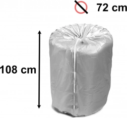 Obal je kompatibilní s pneumatikami o průměru od 13 do 17 palců, což z něj činí univerzální řešení pro většinu vozidel. Zip zajišťuje snadné nasazení a sundání obalu, zatímco stahovací šňůrka na spodní části umožňuje dokonalé přilnutí, zvyšující ochranu proti vlhkosti a prachu.