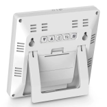 Čtyři přehledné ikony (slunečno, polojasno, zataženo, déšť) usnadní rychlou orientaci. Tříúrovňový ukazatel komfortu a trendové šipky pro teplotu i vlhkost vám napoví, jak se podmínky vyvíjejí.