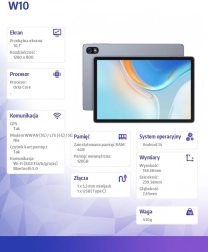 Tablet Ulefone Tab W10 je stvořen pro ty, kdo hledají spojení výkonu a elegance. Jeho 10,1palcový IPS displej s rozlišením 1280 x 800 pixelů nabízí jasné a živé zobrazení vhodné pro sledování videí, prohlížení webu nebo čtení e-knih.