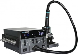 Pájecí stanice Sugon 8630pro je vybavena digitálním displejem, který umožňuje sledovat teplotu a proudění vzduchu v reálném čase. Intuitivní ovládání zaručuje snadné nastavení parametrů pro přesné pájení.