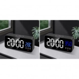 V režimu na baterii se displej rozsvítí tlesknutím nebo hlasem, při napájení ze sítě svítí nepřetržitě. Probuzení si doladíte výběrem 25 melodií a nastavitelnou hlasitostí. Budík navíc zobrazuje čas v 12/24 h formátu, datum, den a teplotu ve °C nebo °F – všechny důležité informace máte na jednom místě.