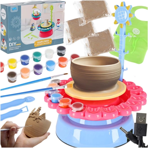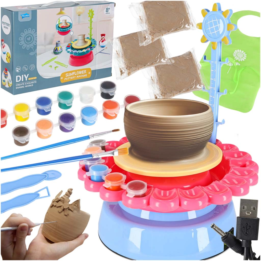 • Kompletní set: kruh, hlína, barvy, štětce, nástroje, USB kabel a fartuch