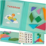 Zábavná a chytrá hra pro děti od 3 let: magnetická knížka s barevným dřevěným tangramem. Díky magnetům mohou děti skládat tvary kdekoliv, bez ztrácení dílků. Součástí je knížka s 96 předlohami v barevné i černobílé verzi. Podporuje logické myšlení, kreativitu a jemnou motoriku – ideální Montessori pomůcka na doma, na cesty i do školy.