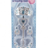 Obsah balení: korunka s modrými kamínky, náhrdelník s ladícím vzorem, náušnice a žezlo s dekorativním srdcem. Lehké plastové provedení je šetrné k dětskému nošení a snadno se kombinuje s jakýmkoli kostýmem.