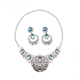 Sada šperků s jemnými kruhovými motivy a modrými kamínky dokonale ladí s korunkou a doplní slavnostní outfit malé princezny.